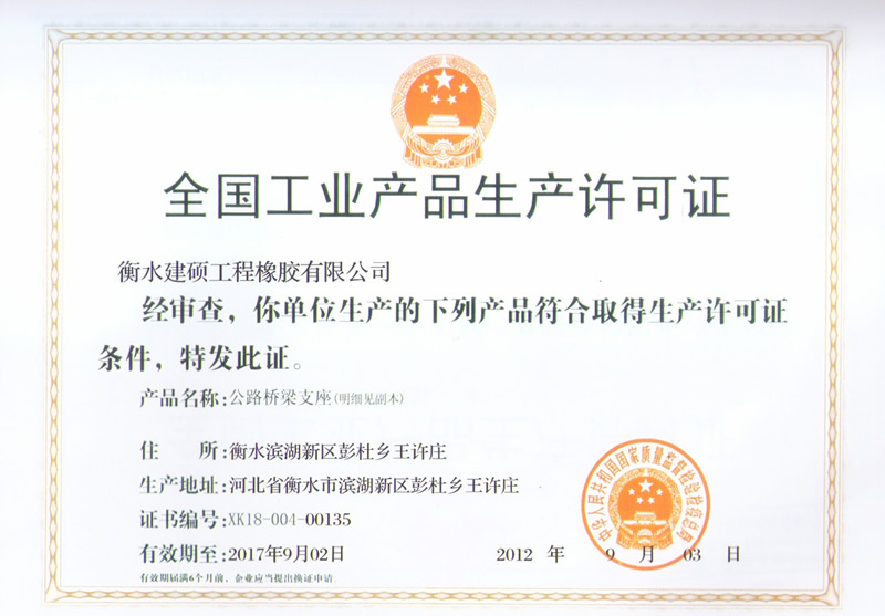 橡膠支座;公司下設(shè)研發(fā)部、質(zhì)檢部、供應(yīng)部、銷(xiāo)售部、生產(chǎn)部、技術(shù)部、財(cái)務(wù)部。生產(chǎn)車(chē)間的硫化車(chē)間、機(jī)加工車(chē)間、伸縮裝置車(chē)間、煉膠車(chē)間、沖剪車(chē)間、組裝車(chē)間。年生產(chǎn)能力板式橡膠支座100萬(wàn)立方分米,盆式支座8000余臺(tái),止水帶100萬(wàn)米,伸縮裝置5萬(wàn)延米。